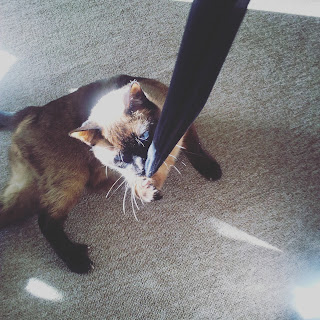 Слева видно кувшин с водой для цветов. Кошка искренне уверена, что это ее поилка. Ну ОК))